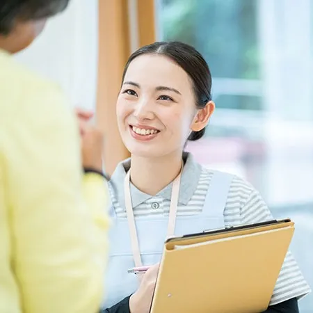 ご入居までの流れをわかりやすく解説いたします。まずはご入居者様やご家族様の理想に寄り添う施設かどうか、見学やご相談を通じてご判断いただいております。費用や生活のスケジュール、医療面などのご不明点にも丁寧に回答しているため、わからないポイントや気になる点は気軽にご質問いただけます。ご本人様との面談も欠かさずに実施しており、臨機応変に対応しています。
